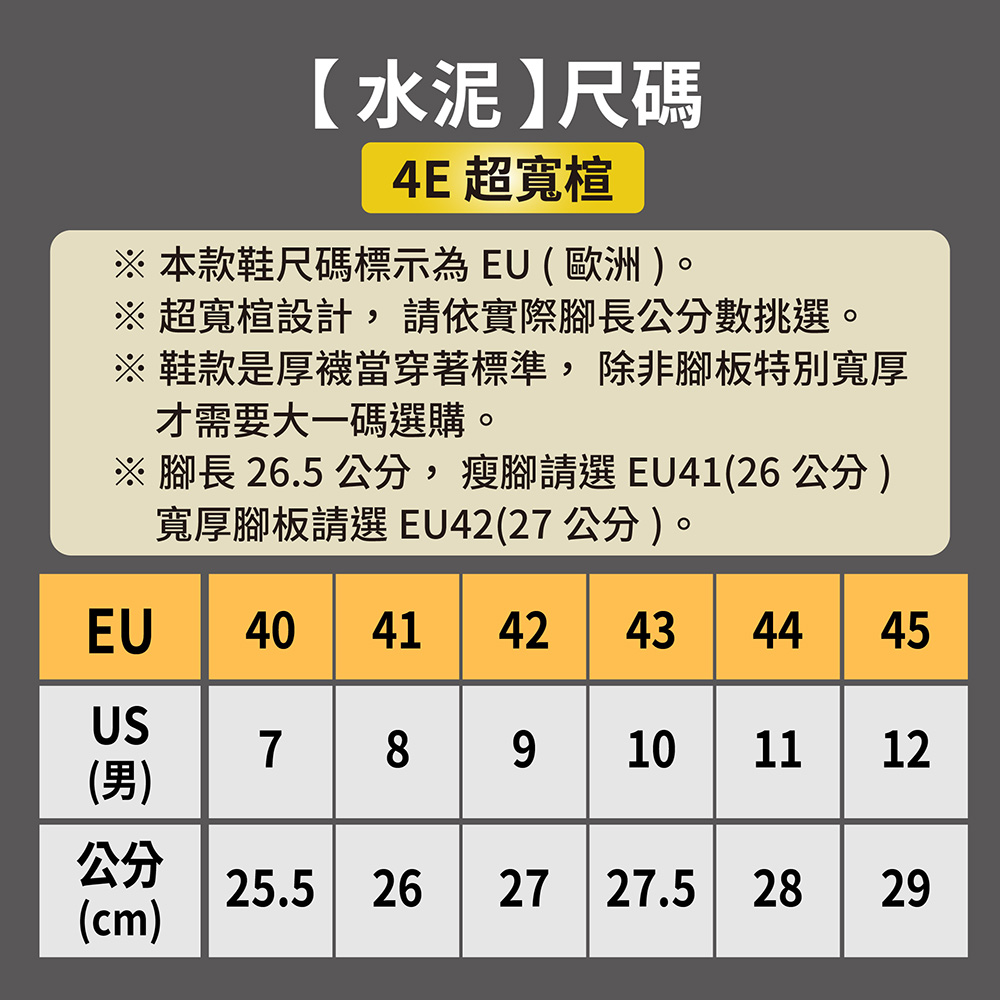 寬厚腳板:可穿 27~27.5cm 較舒適。